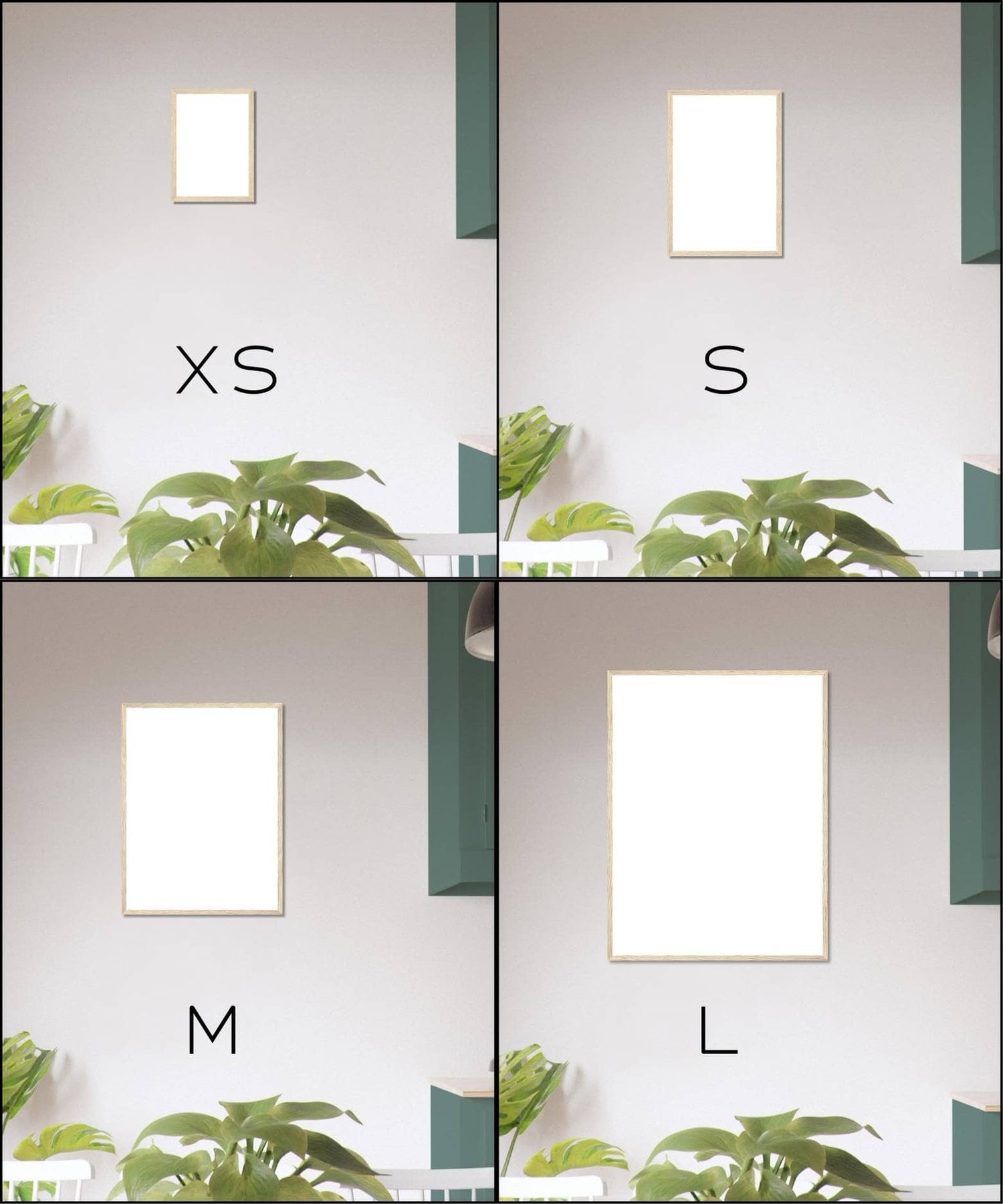 If in doubt, we recommend sizing up as customers sometimes regret going for a smaller size or not adding a frame.