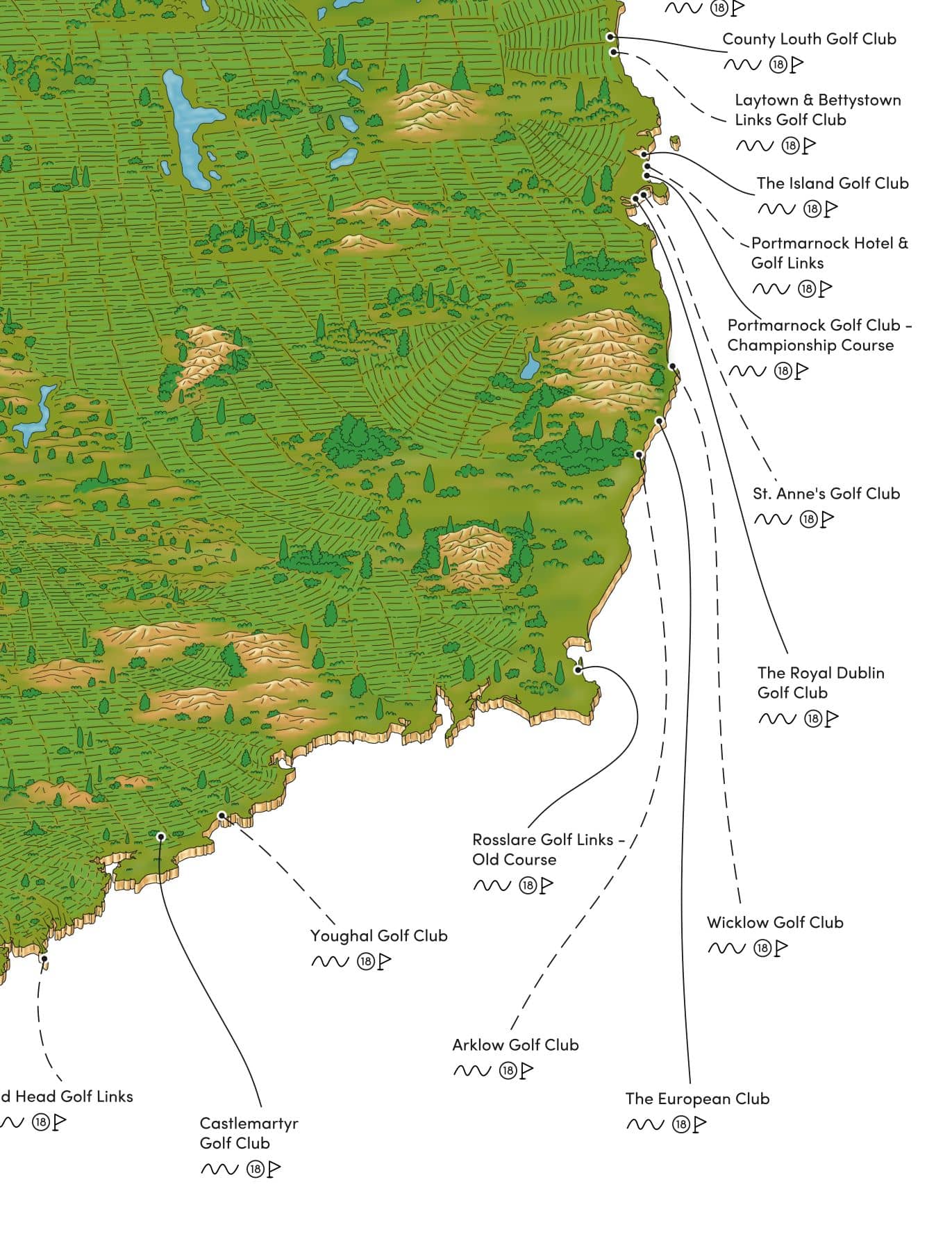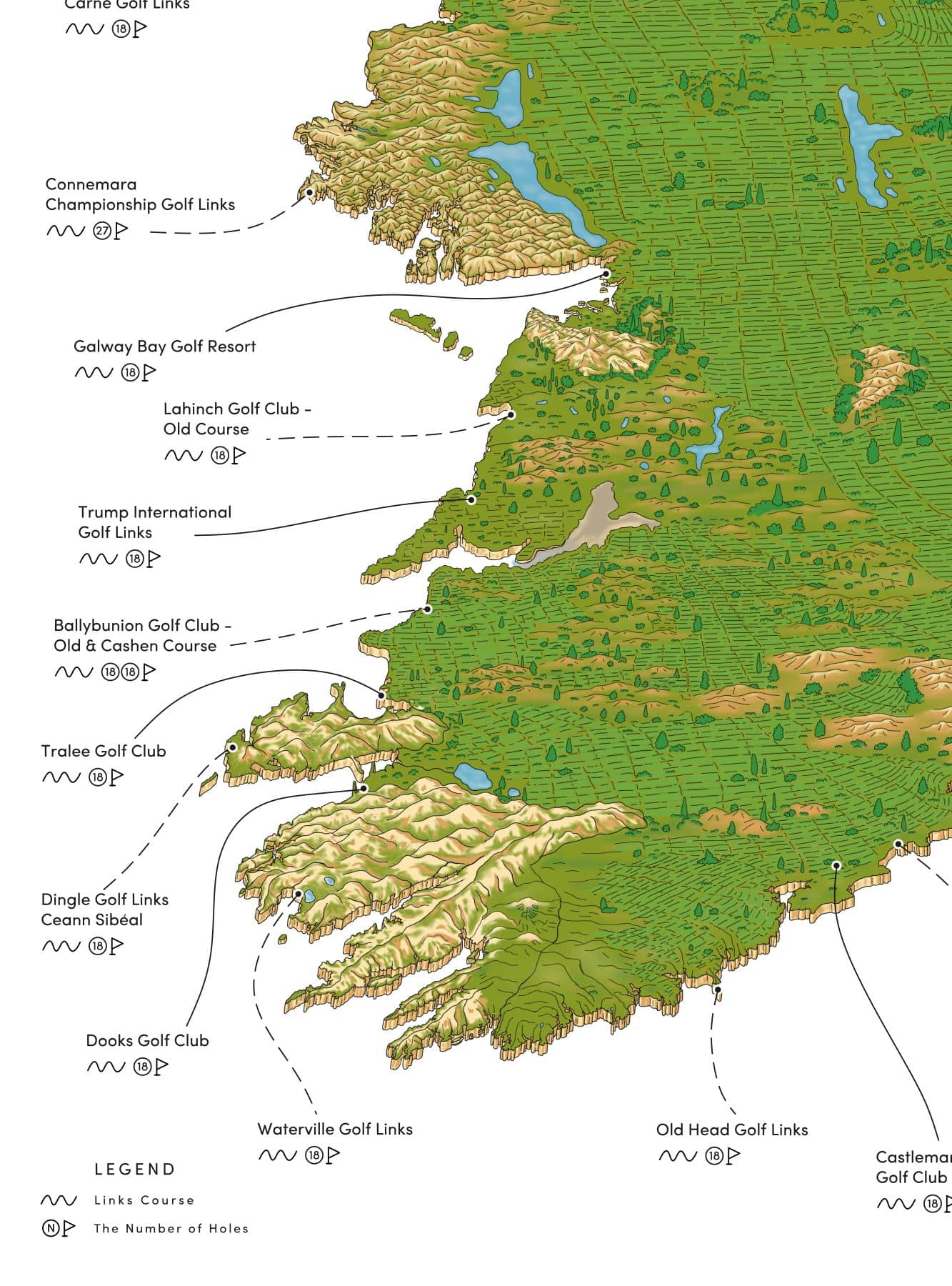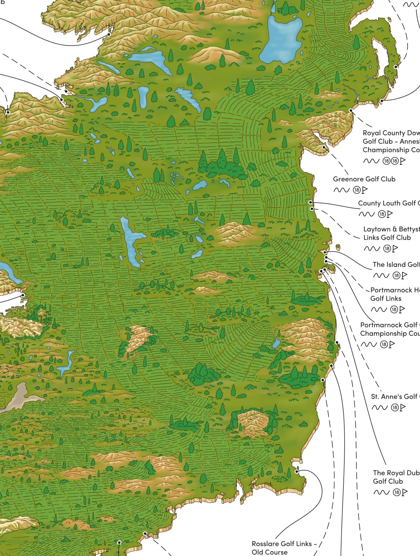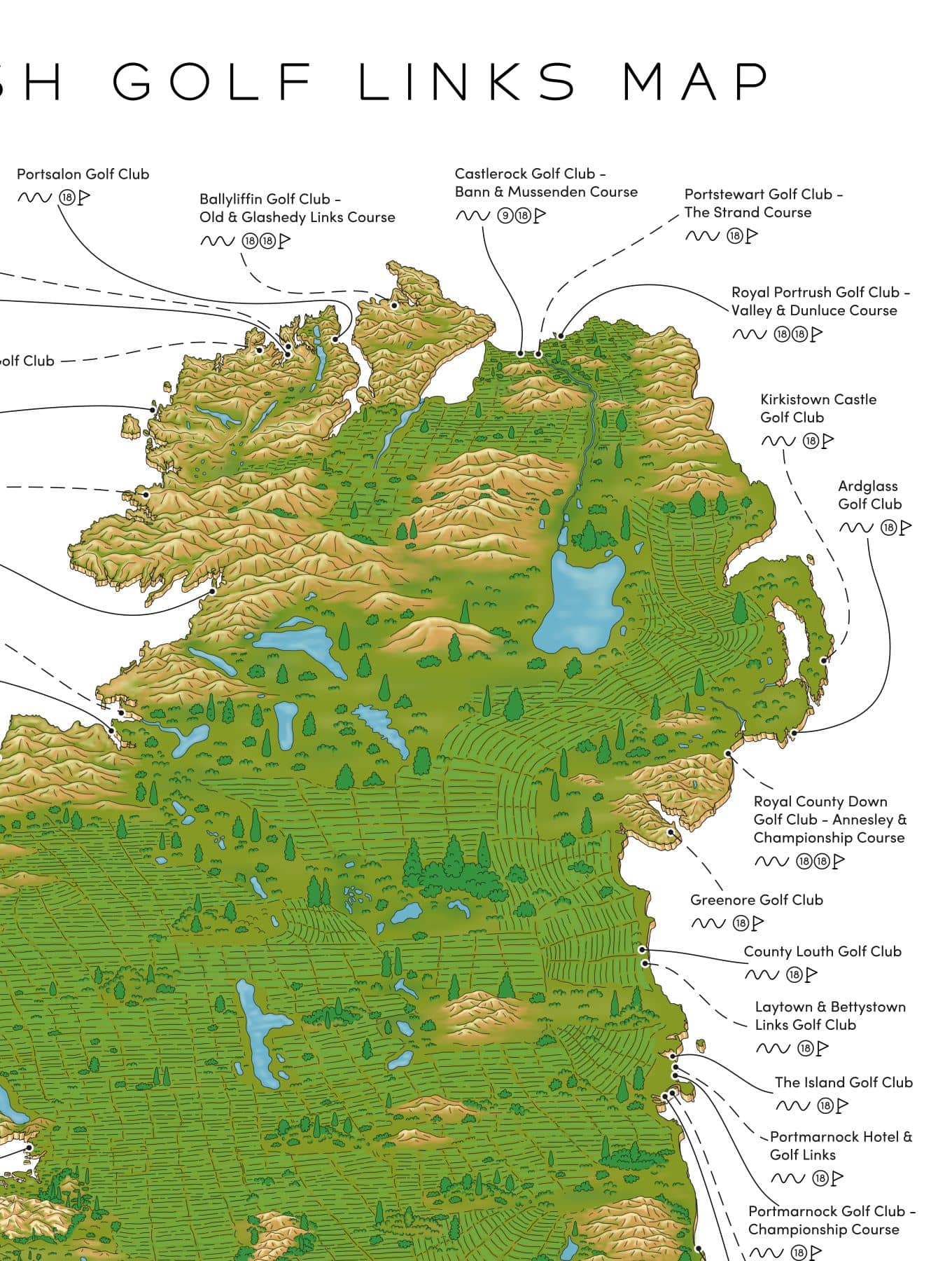 🏌️♂️ 42 of the top golf links course in Ireland & NI mapped out by hand.