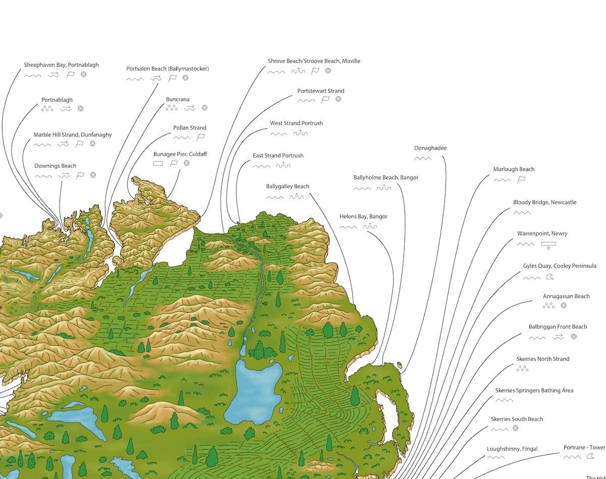 The Second Edition of this map, with 29 more swim spots and improved coverage of Kerry, Cork, Down and Antrim is now available here (click here to view).